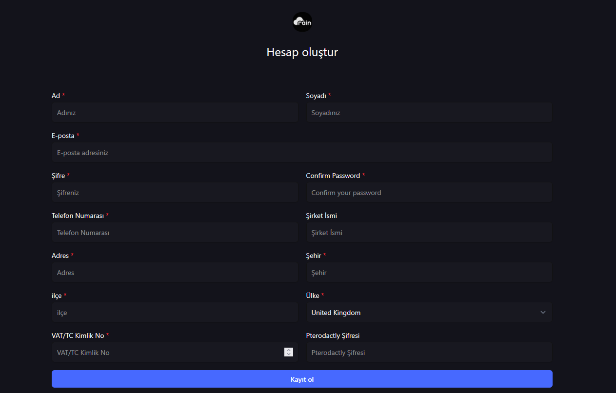 ilk öncelikle Raincloud müşteri paneli 🌌 https://billing.raincloud.com.tr adresine gidin.